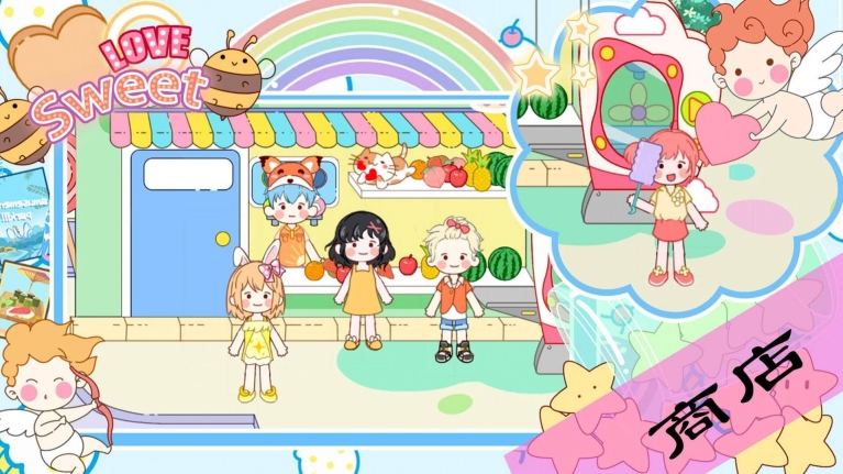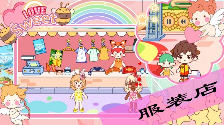 1、游戏中设置了诸多场景,像游乐场、服装店,这些场景内包含多种区域,例如寿司店、商店等。