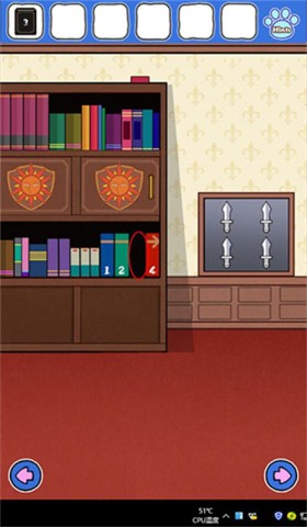 5、接着往右边前行,走进摆放书架的房间,把3号书籍放置到下层的空位上,然后打开上方的柜子,瞧瞧里面藏着什么秘密。