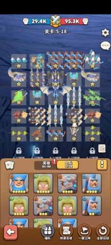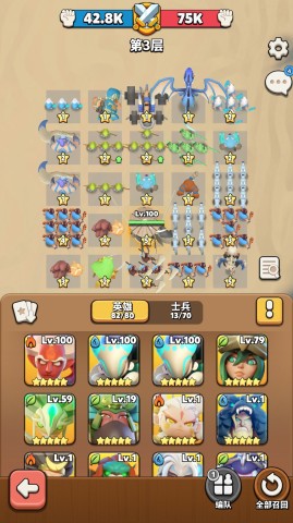 2、然而,这套阵容仅适用于主线的小怪关卡。一旦面对boss或参与竞技场挑战,就必须将英雄与士兵合理搭配成阵。小怪关卡的敌人相对简单,往往能自动通关;但boss战和竞技场中的敌方情况复杂多变,英雄可为队伍提供增益效果。所以,在资源充足时,尽快抽取英雄是相当明智的选择。