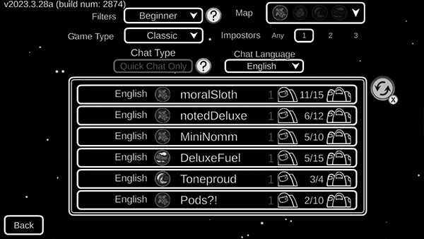 游戏开局由主机进行设置,冒充者人数上限为3个。然而,在游戏中,冒充者的获胜条件是冒充者人数与船员人数相等时便可取胜。基于此,设置3个冒充者会导致游戏体验不佳,相较之下,2个冒充者的设定更为合理。