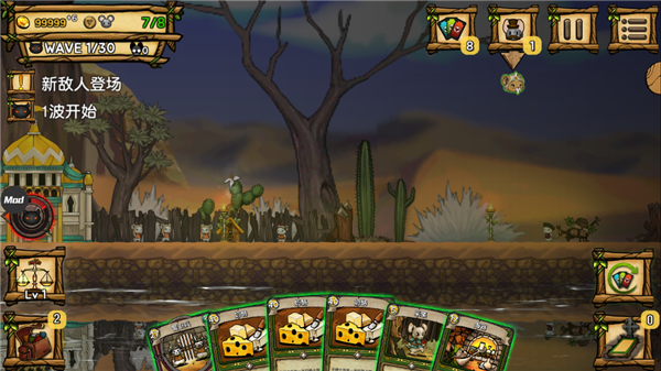军事卡,从名字就能明白它是用来保卫家园、提升鼠国军事实力的。这种卡能够反复使用,不过每次征召都需要消耗金币与人口。另外,在军事卡方面,随着游戏波数不断增加,你务必要保证自己的军事单位能够抵挡住如潮水般涌来的袭击。