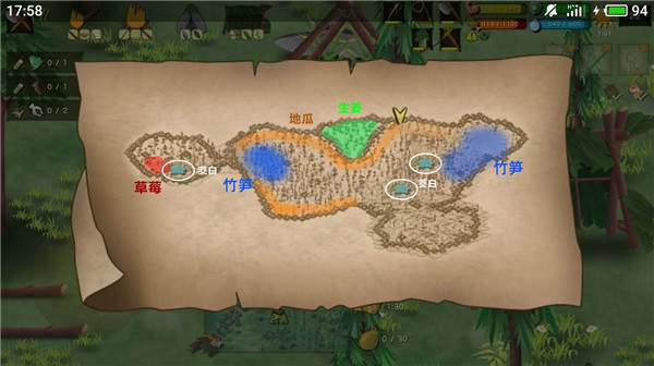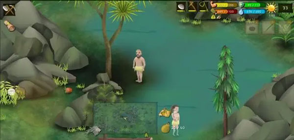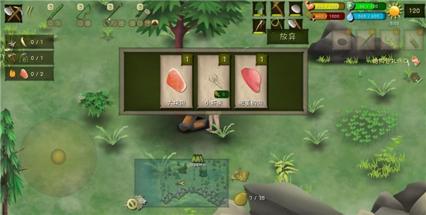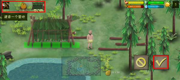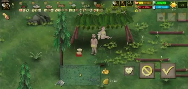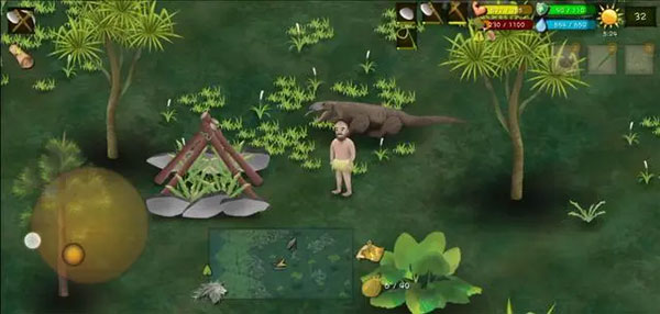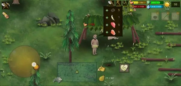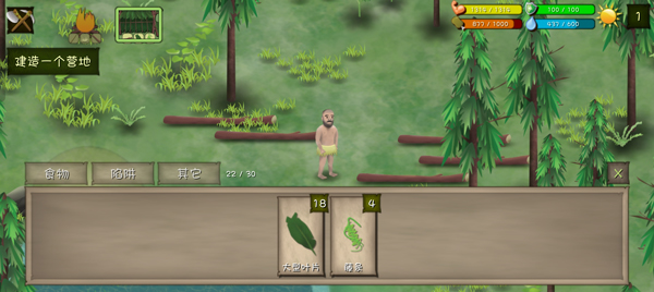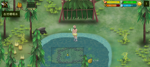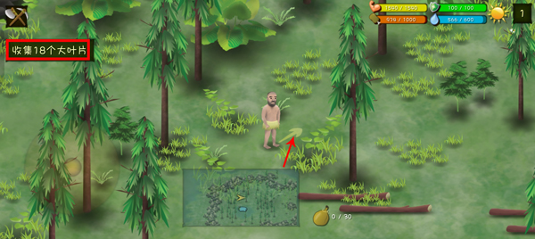 1. 游戏开局前往走廊方向搭建营地,接着着手收集食材与材料。在前期,无需担忧饮水问题,可前往竹林砍伐竹子,制成竹筒放置于地面,下雨天时竹筒接满水后便回收利用;也能用套索去够椰子树,椰子既能食用又能解渴,十分便捷。