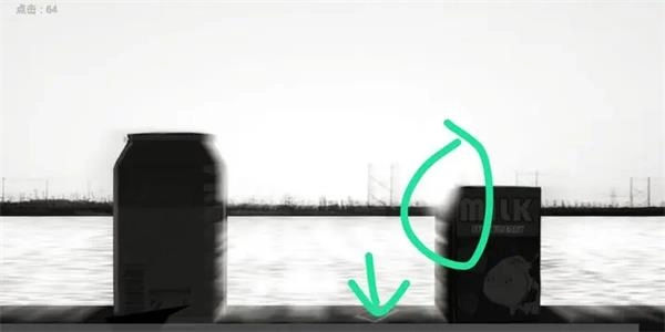 点酸奶盒或易拉罐到夕阳的地方(夹在中间)