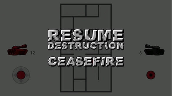 点击手机的返回键就能呼出游戏菜单,其中“RESUME DESTRUCTION”是回到对局继续游戏,“CEASEFIRE”则是退出当前这一局。