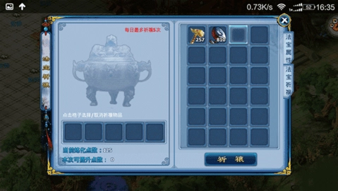 冰冻三尺非一日之寒,法宝也和天命系统一样,需通过升级才能实现实力飙升。这就要求每日进行五次祷告以获取提升点,现阶段除了系统初始赠送的石头可吞噬获得10000提升值外,就只能消耗玄铁和锤子来积累点数。所以不必再为锤子与玄铁占用包裹空间而发愁,这些都是升级的必备材料。