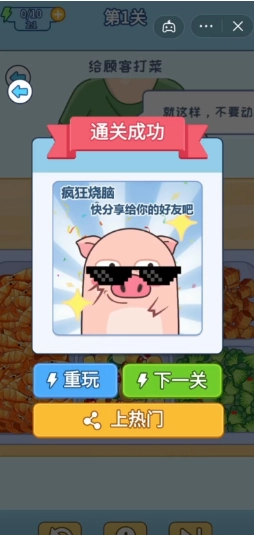 打开食堂打饭,进入第一关,根据顾客需求打饭。
