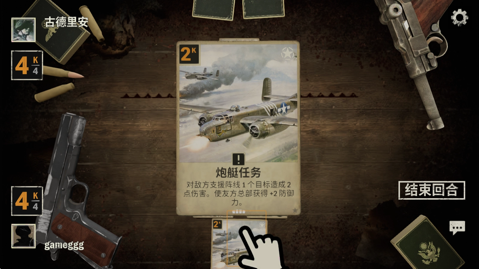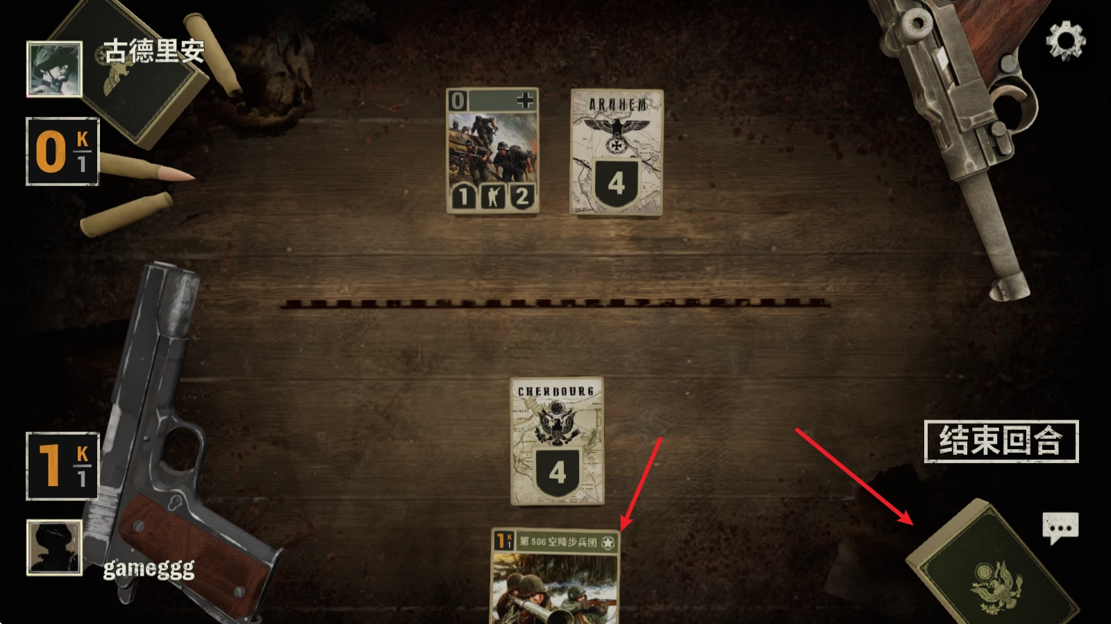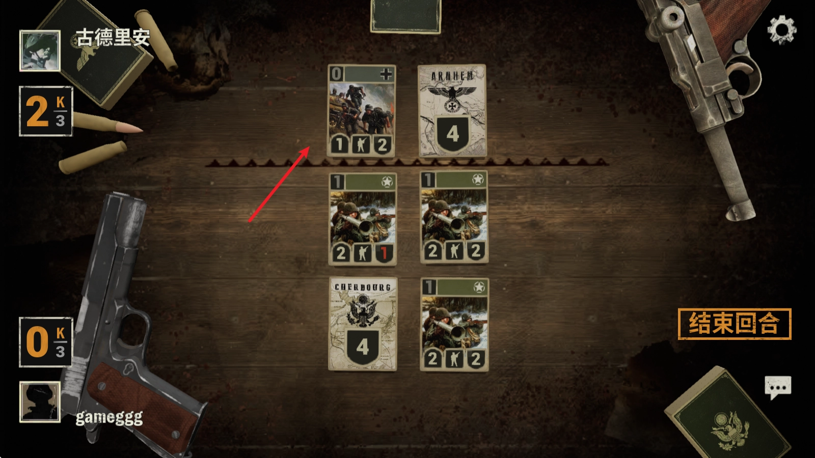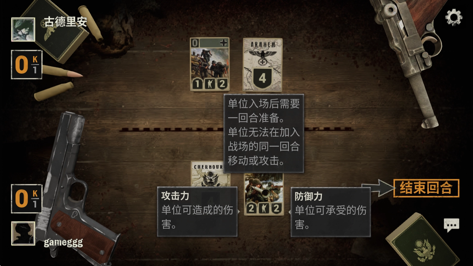 长按卡牌就能查看其信息,点击右侧的“结束回合”按钮,便会进入对方的回合。