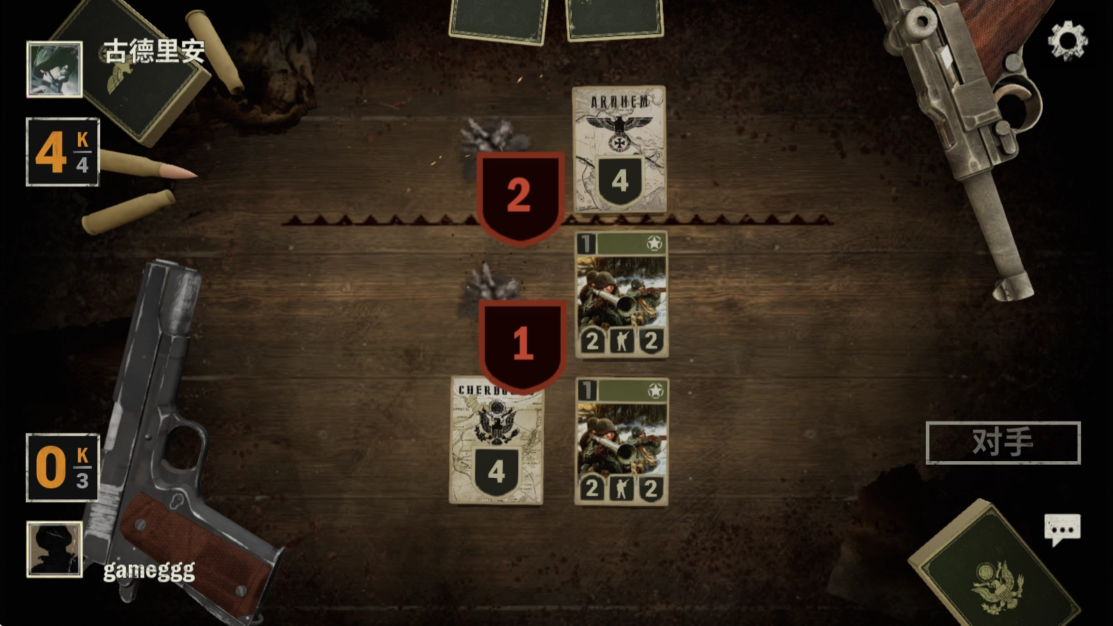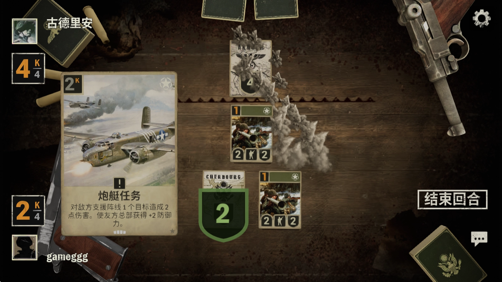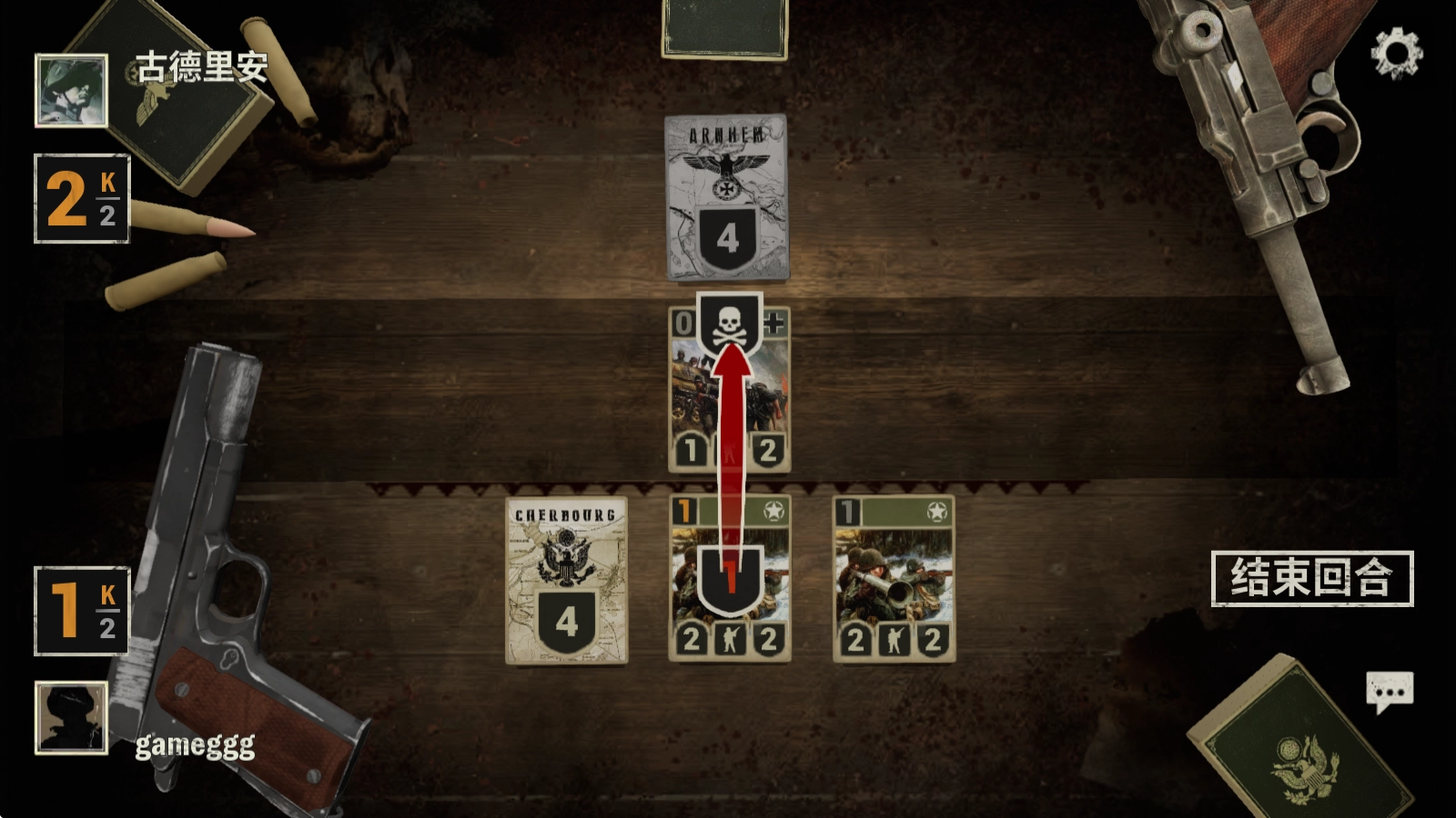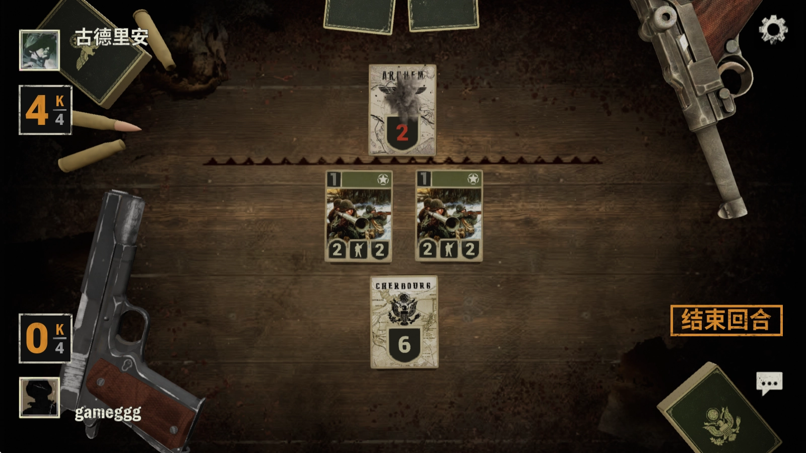长按卡牌就能查看其信息,点击右侧的“结束回合”按钮,便会进入对方的回合。