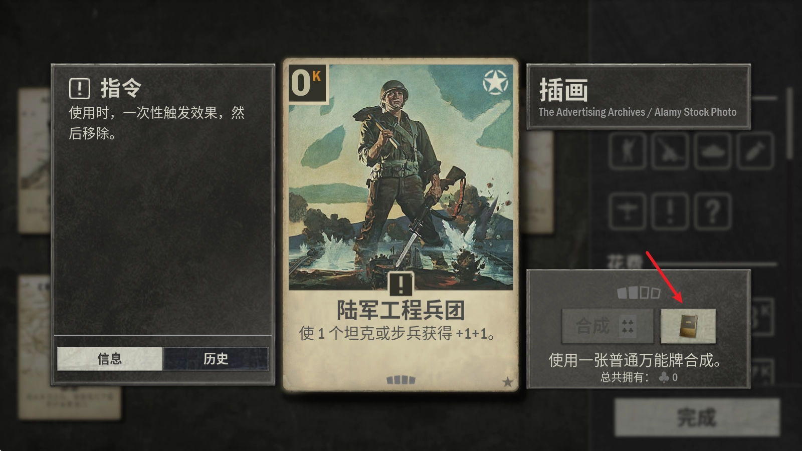 进入后,在右侧这里的按钮就可以看到用万能牌合成。