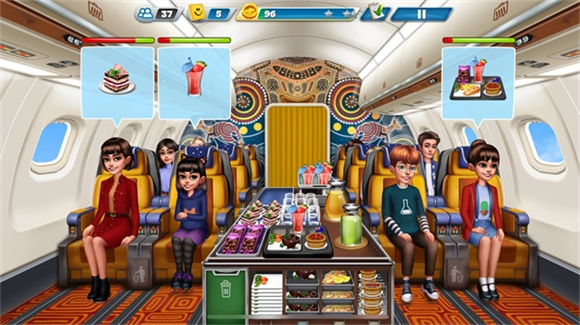 在客舱里,顾客头顶会显示他们想要的食物。你只需把食物拖到顾客那儿,就能满足他们的需求啦。