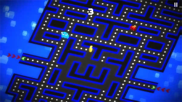 游戏里的迷宫中散布着大量豆子,玩家得操控吃豆人把这些豆子都吃掉,每吃掉一颗豆子都能得到对应的分数。