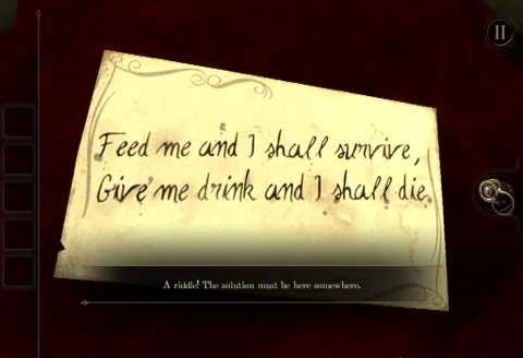 解谜语的步骤是:双击纸片,然后依据谜面“喂吃的就活,给喝的就死”来选择“火”元素,这样就能获得钥匙。