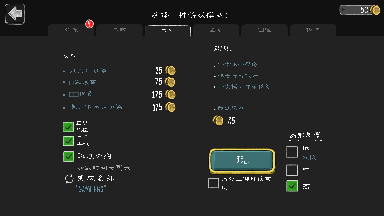 游戏开始后,我们能够挑选不同的难度来发起挑战,而依据难度高低与通关方式的差异,所得到的金币数量也会各不相同。
