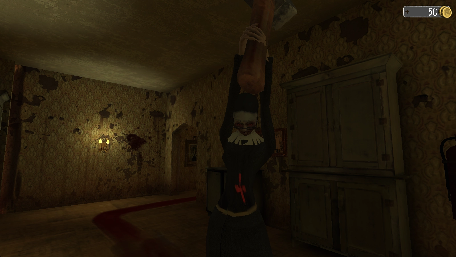 要小心避开修女的追捕,你总共拥有三次机会,要是在这三次机会里没能成功逃脱,玩家就会被修女抓住,遭受可怕的惩罚。