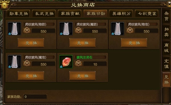 550功勋可兑换一个,初始就能增加1000战力,强度很高。前期第一周若能赢三场家族战,或者赢两场且自己是贡献最高的成员,就有机会换到——想抢最高贡献,可用战车拿宝石上交、占领旗子等方式。就算第一周没换到也别急,慢慢攒功勋就行。兑换时一般选和自己攻击属性对应的披风,换好后用披风注灵石充灵,充满会消耗白色披风进阶成蓝色,后续也是逐步进阶。