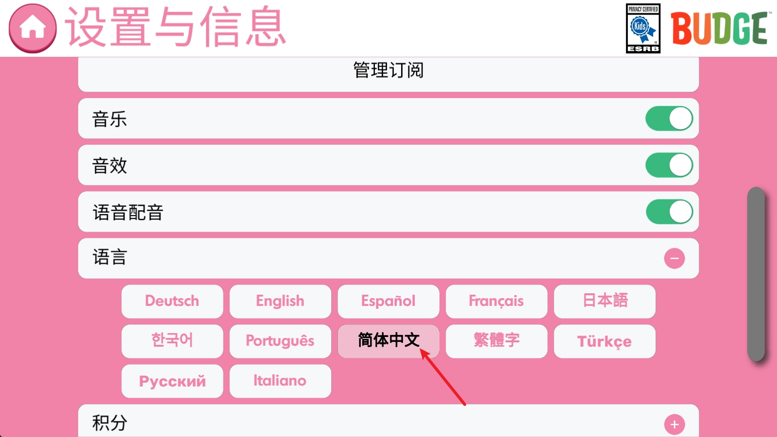 进入设置界面后,找到页面下方的language选项,点击它右侧的加号按钮。
