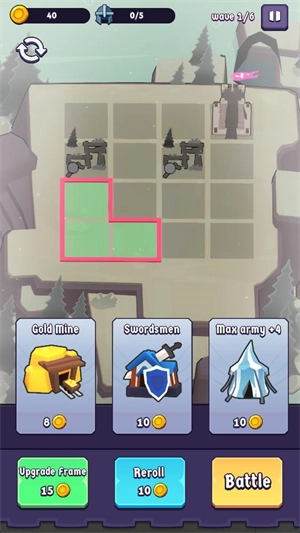 点击“battle”按钮后战斗便会启动,建筑会每隔一定时间召唤出一个小兵。