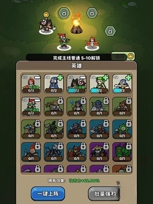 游戏里设置了各式各样的英雄角色,玩家完成主线关卡后会慢慢解锁更多英雄格子,以此构建更厉害的出战阵容。