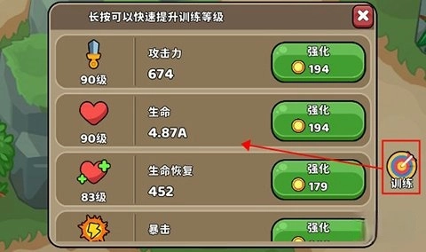 玩家能够借助界面下方的训练功能,有针对性地强化角色的各项属性,像攻击力、生命值、暴击率这类,从而让整体战斗力得到有效的提升。