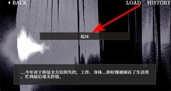 在初始剧情界面里,点击“起床”选项是推动剧情发展的关键操作,完成这一操作后,便能进入后续的日常互动环节。