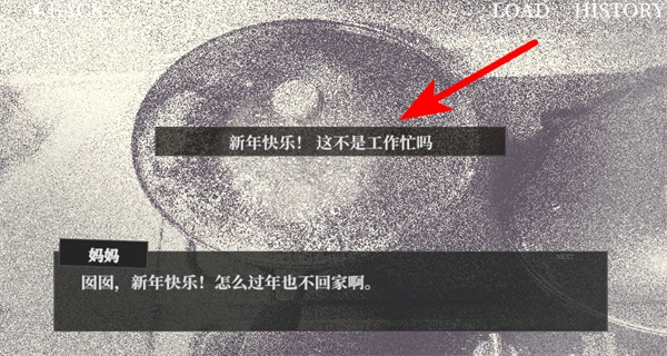 在和妈妈的对话选择界面,点击“新年快乐 这不是工作忙吗”这个选项,选好之后就能继续推动剧情对话了。