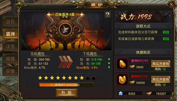 它能显著增强防御力与攻击力,盾牌碎片可借助回收装备、击败BOSS等方式获取,升级盾牌能够实现对BOSS伤害的免疫。