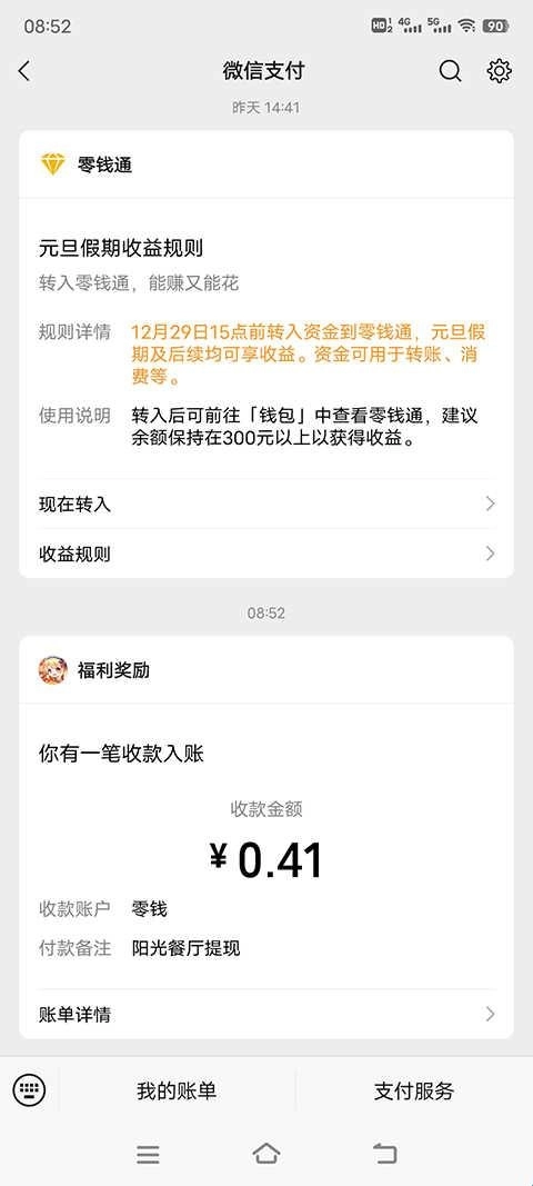 当你积累到一定数量的红包后,就能把它们兑换成现金红包啦。基础兑换比例是100:1,而且等级越高,兑换时的比例就越划算。从下面的图里可以看到,当前能兑换的红包金额是0.41元。