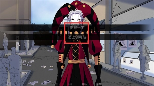 触发角色交互界面后,挑选对应的交互选项(例如“安慰一下”“递上创可贴”),完成和该角色的互动操作。