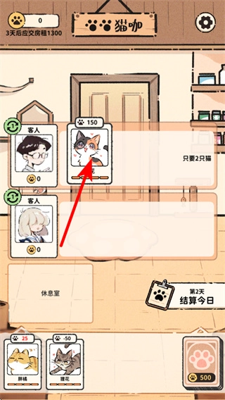 不必等到攒够房租才添置新猫,开局时金币充裕就该马上入手,优先凑钱买下第二只德文卷毛猫,这样能解锁从根源上防止猫咪走失的功能,确保收益稳定。