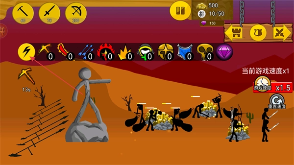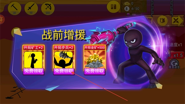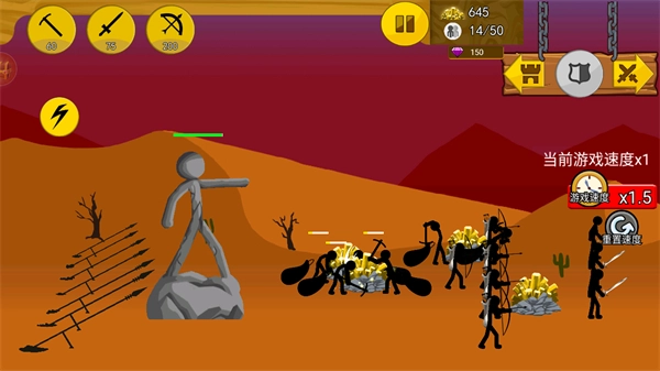 《火柴人奇袭》是一款围绕火柴人世界霸权争夺展开的策略战斗作品。在这个原创构建的世界里,各方势力为夺取霸权纷争不断,每个势力的兵种都只有一项突出技能:剑士擅长快速近战,却难以抵挡弓箭手的攻击;弓箭手拥有远程杀伤优势,却对长矛手心存忌惮——正是这种兵种间的相互克制,让战争始终无法停歇。玩家需要通过巧妙搭配不同兵种来掌控战局走向,最终达成统治整片大陆的目标,而游戏中的金币机制则为兵种的培养与收集提供了有力支持。