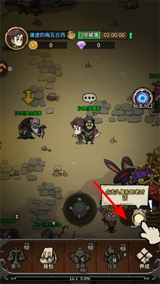 打开背包界面后,选中像1级武器这类已获得的装备,就能给角色穿上对应的装备,以此提升基础属性,通过冒险逐步积累战力。