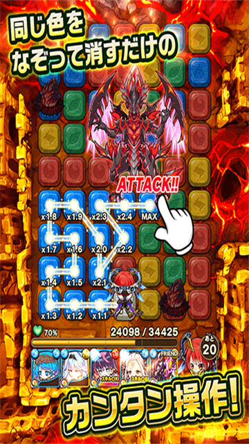 波可龙迷宫日服是日本grenge公司推出的连线消除RPG游戏,玩法规则十分简单!核心就是追踪谜题!大家可以尽情追踪“Pocolon”,去捕捉每次挑战都会变换模样的神秘地牢!要是能连接大量相同元素,攻击力就会通过连锁效应不断提升!享受连续攻击带来的组合效果吧!