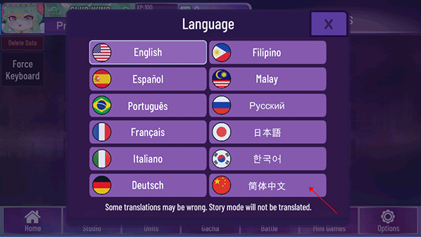 1、打开游戏内的“options”设置界面,找到“language”选项;