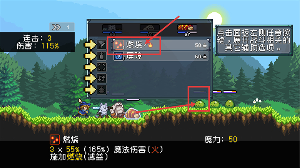 2、在战斗过程中运用【燃烧】技能,能够给敌方施加减益效果,同时造成魔法伤害,结合连击机制可以提高输出效率。
