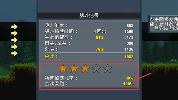 4、战斗获胜后可获得【稀有掉落几率提高40%】与【金钱奖励增加120%】的加成,结算时获得高评价还能进一步提升资源获取的收益。