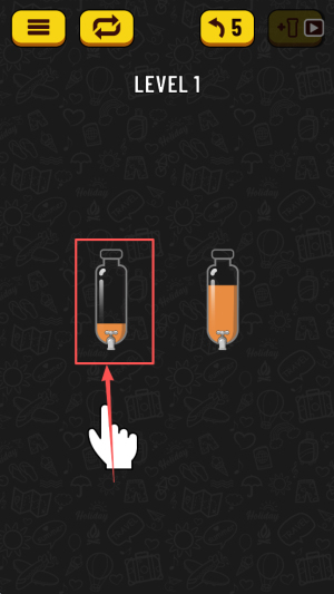 2、查看初始状态:进入关卡后,留意屏幕上显示的55毫升和+10毫升提示,以此明确LEVEL 1的目标。