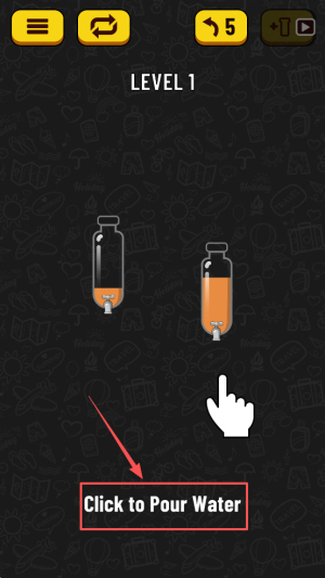 3、点击倒水:按照屏幕上“Click to Pour Water”的提示操作,把容器里的水位调整到目标刻度。