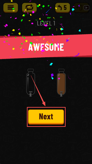 4、继续挑战下一关:当屏幕上出现“AWESOME”的通关提示文字后,点击“Next”按钮即可直接进入下一关的挑战环节。