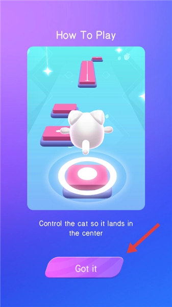 1、点击【Got-it】按钮,按照提示操作来控制小猫,让它落在平台的中心位置。
