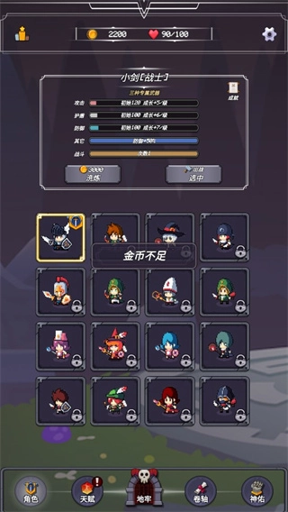4、此外,要是我们的角色攻击能力不够强,同样可以进行升级,并且也能更换角色。