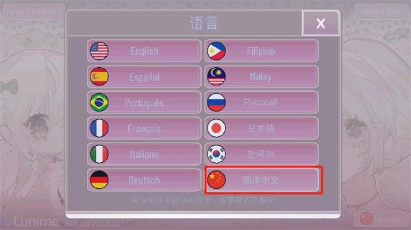 点击图中所示的位置,就能把游戏内的语言切换成简体中文。