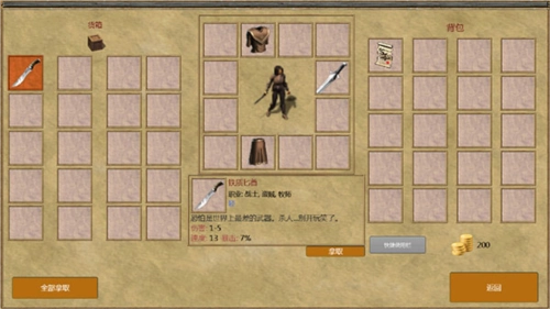 8、可查看自身装备、背包及箱子内的物品,并能点击获取;