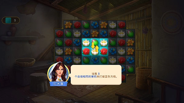4、成功消除后蓝色方格会被打破露出下方的土地,而持续消除是推进进度的主要方式。