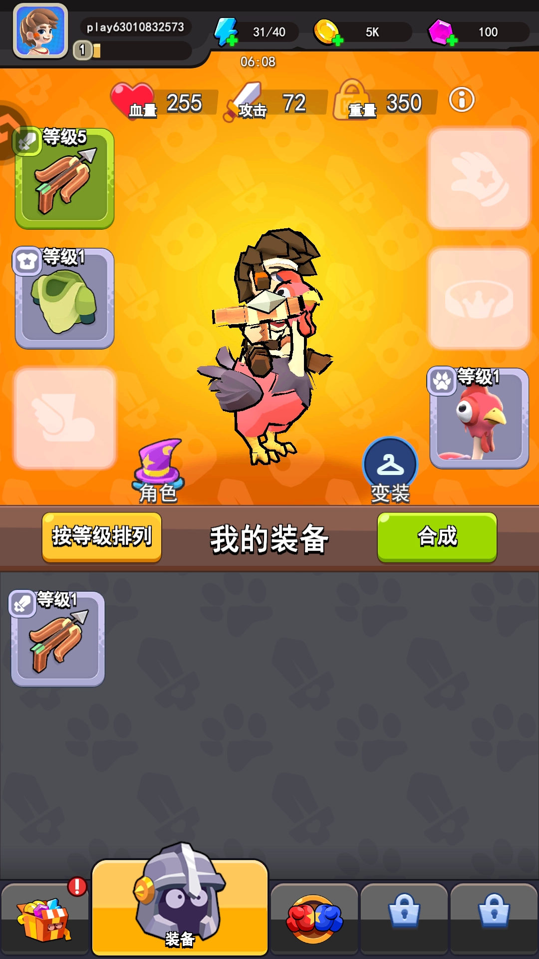 6、角色可以进行穿戴装备,而且装备可以进行升级强化。