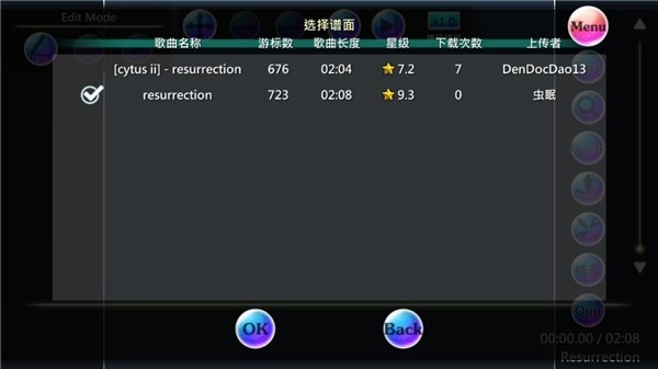 搜索结果显示后,挑选你想游玩的谱面并点击OK,游戏会提示读取完成,此时该谱面就已经成功导入到你的游戏中了。