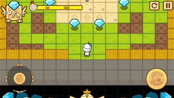 进入游戏后,你可以滑动左侧的移动键来收集钻石。当所有钻石都被收集完毕后,就能得到钥匙,用这把钥匙打开门逃离就可以了。