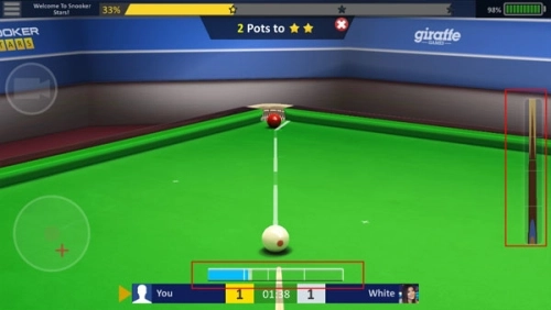 3、先确认台球可以顺利入洞,接着点击右侧的球杆开始蓄力,击球力度的大小同样会影响台球能否成功进洞。