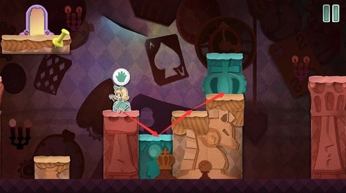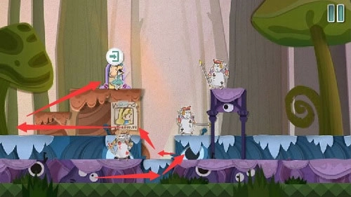 1、按照下图所示移动方块,把扑克兵卡在屏幕的另一侧,接着下拉操纵杆以打开时钟塔的门。