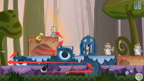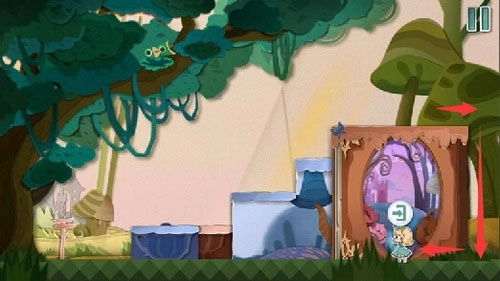 6、站到青色方块上,把红色场景向左移动,将老鼠驱赶到高台外侧。