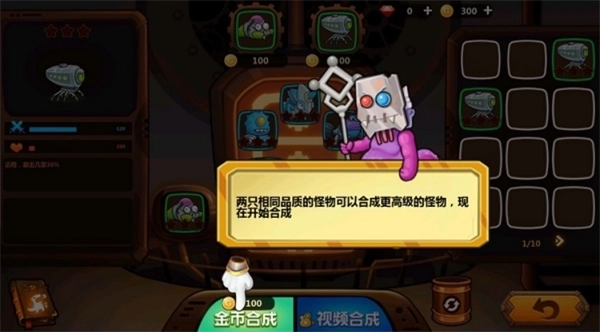 进入“熔炉”界面,投入2只低阶怪物,就能尝试合成出高阶怪物。